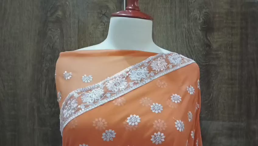 Elegant Orange Georgette Saree with Sequin and Thread Embroidery