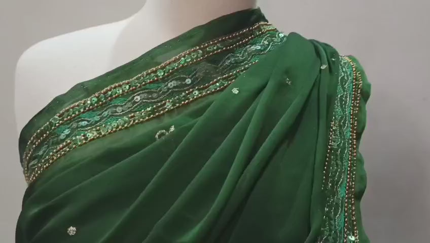 Deep Forest Green Stitched Silk Saree with Sequin and Zari Embroidery