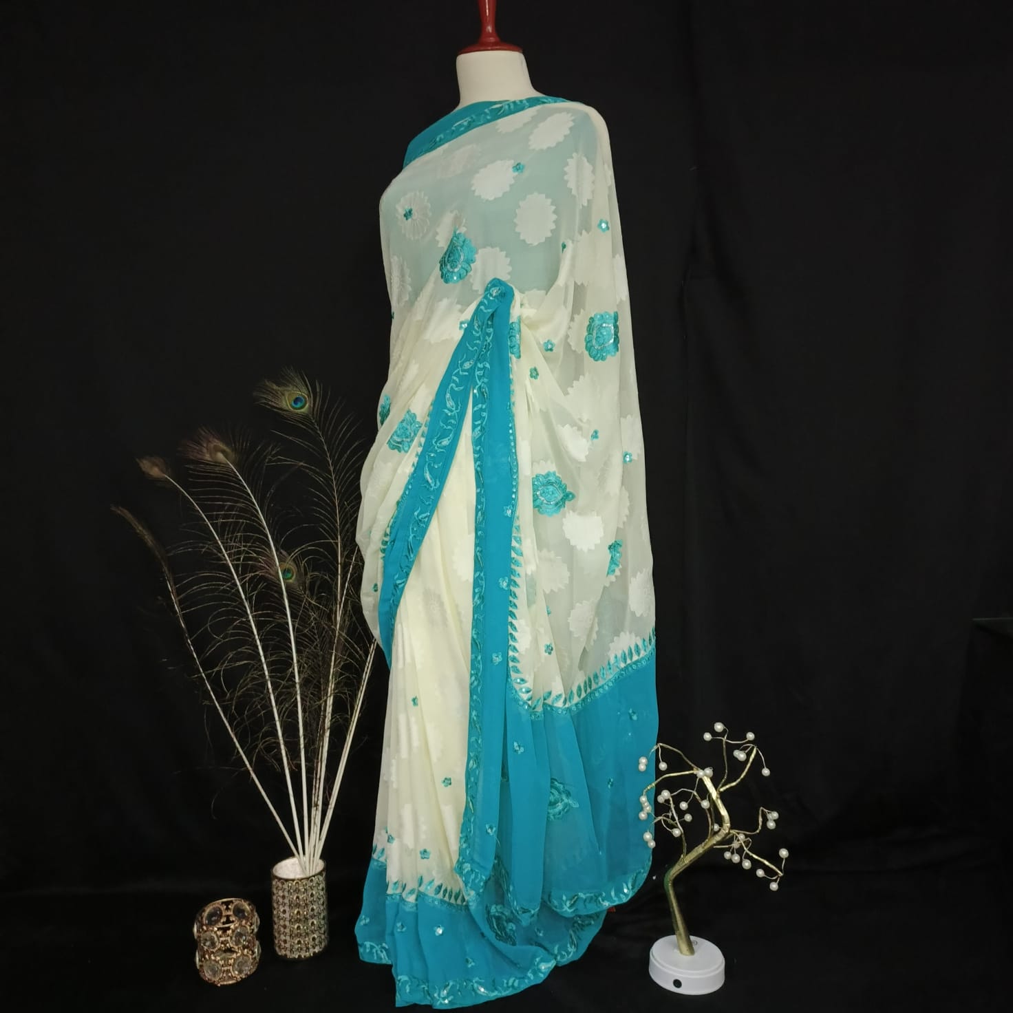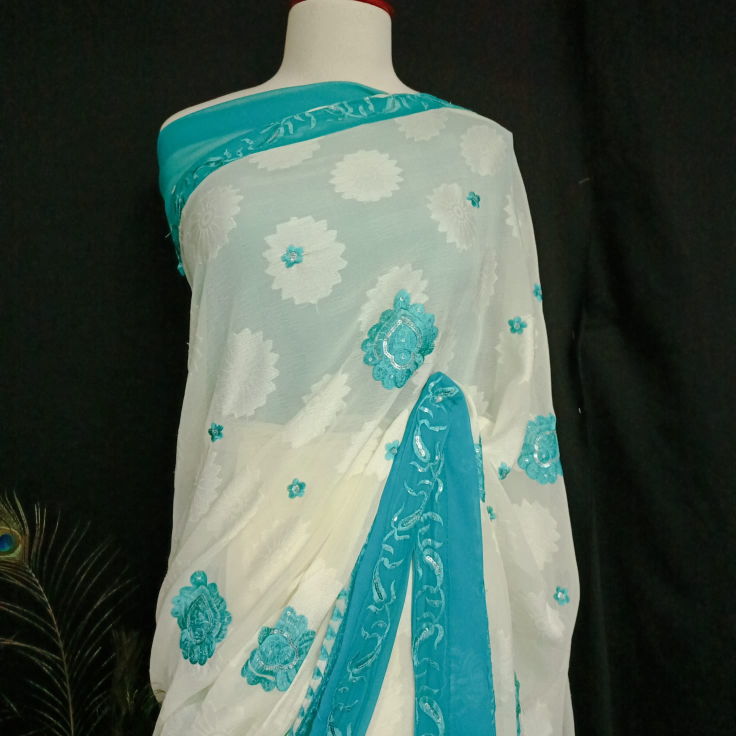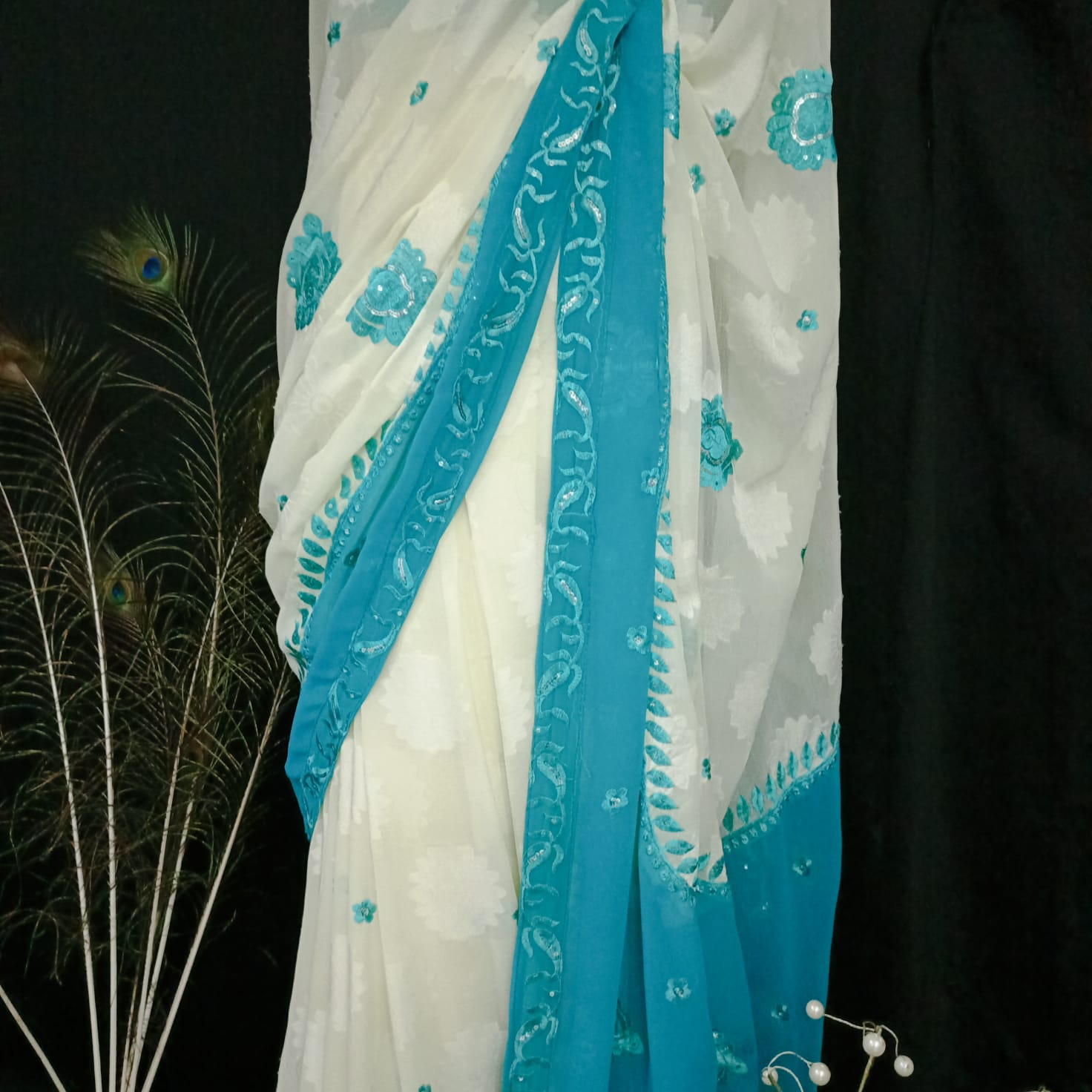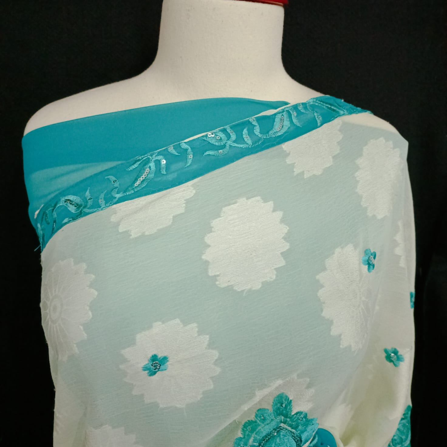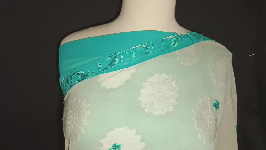 Elegant 7-Yard Broshia Chiffon Saree with Light Sea Green Embroidery Work