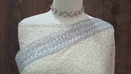 View compareElegant Cream Lace Saree with Silver Sequin Border