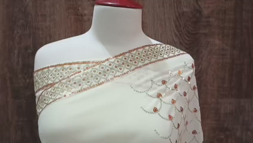 Graceful Off-White Georgette Saree with Copper Sequin Embroidery