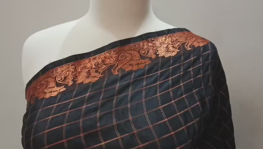 View compareStitched Black Silk Saree with Copper Zari Checks & Unstitched Matching Blouse Piece